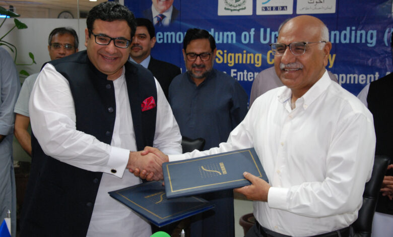 سمال اینڈ میڈیم انٹرپرائزز ڈویلپمنٹ اتھارٹی (سمیڈا) اور اخوت اسلامک مائیکرو فنانس کے درمیان مفاہمت کی ایک یادداشت (ایم او یو) پر دستخط ۔
