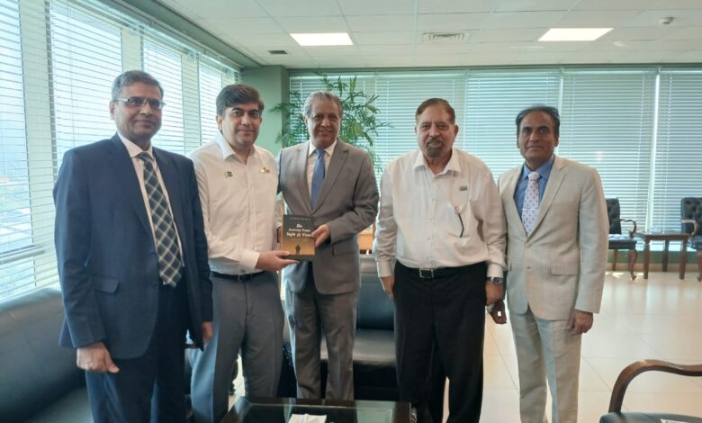 وفاقی وزیر برائے ہیومن رائٹس سینیٹر اعظم نذیر تارڑکی مئ ڈے فاونڈیشن کے چیف ایگزیکٹو لیفٹننٹ کمانڈر ر شواز حسین سے ملاقات